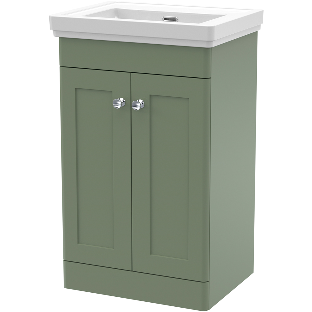 nuie Classique 2 Door Satin Green Floor Standing Unit and 0 Tap Hole Fireclay Basin 500mm