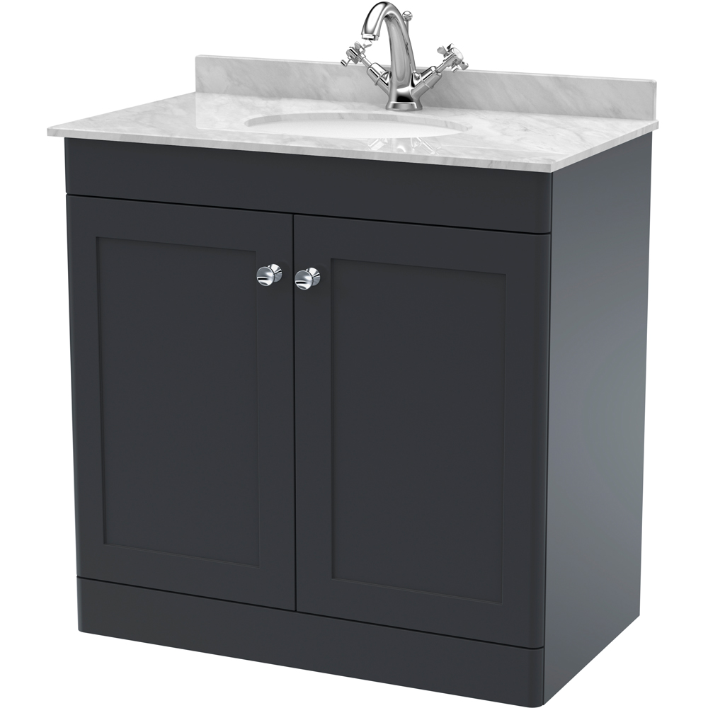 nuie Classique 2 Door Soft Black Floor Standing Unit and 1 Tap Hole Marble Top Oval Basin 800mm