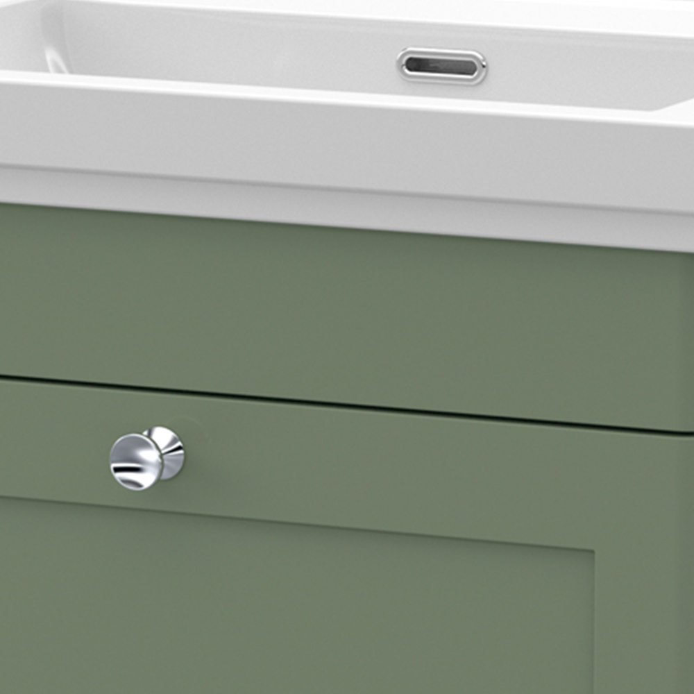 nuie Classique Single Drawer Satin Green Wall Hung Unit and 0 Tap Hole Fireclay Basin 600mm