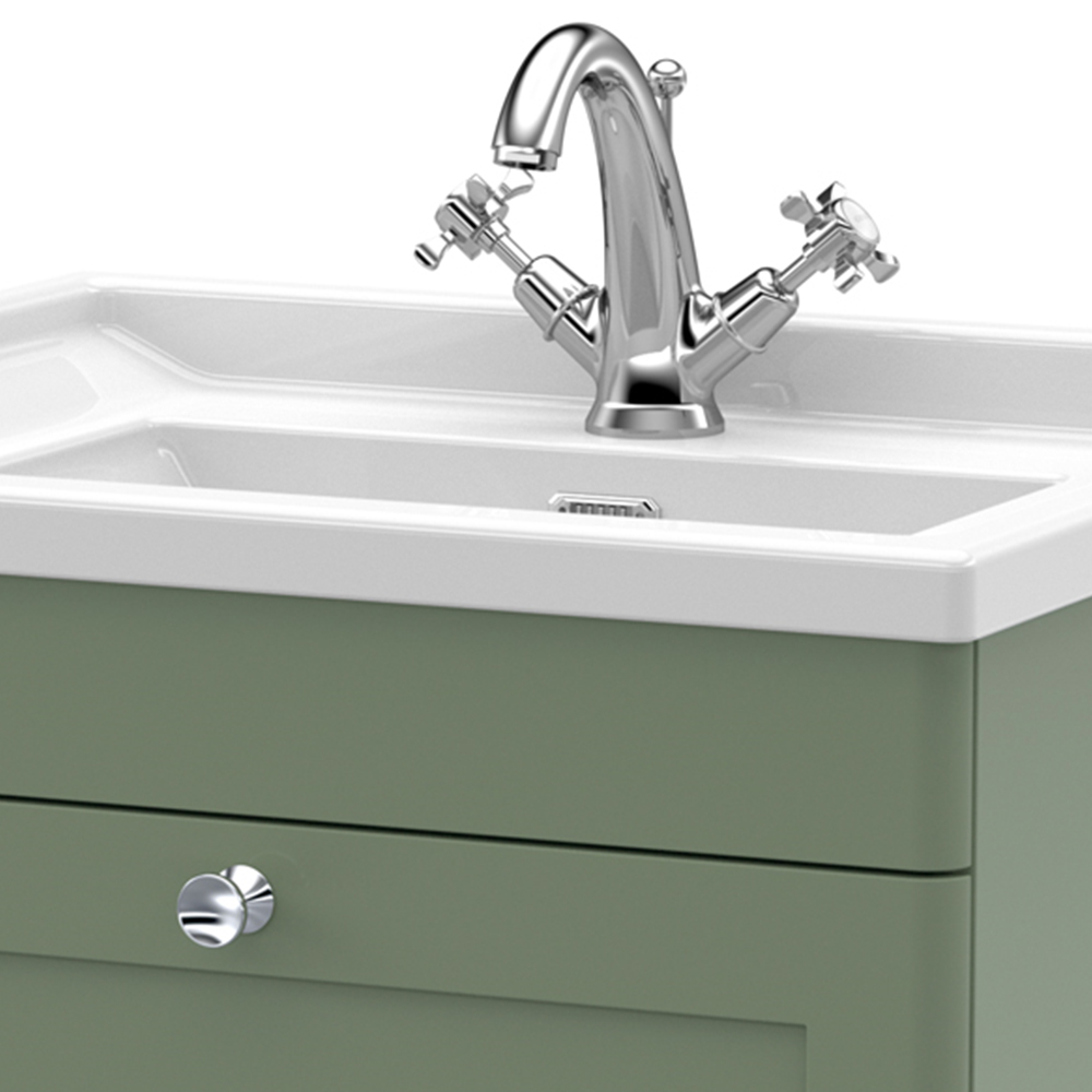 nuie Classique Single Drawer Satin Green Wall Hung Unit and 1 Tap Hole Fireclay Basin 600mm