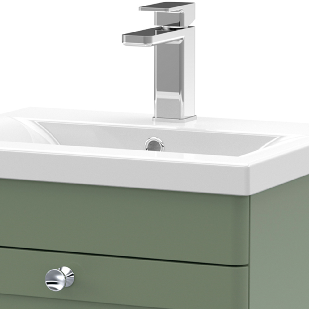 nuie Classique Single Drawer Satin Green Wall Hung Unit and Mid-Edge Ceramic Basin 500mm