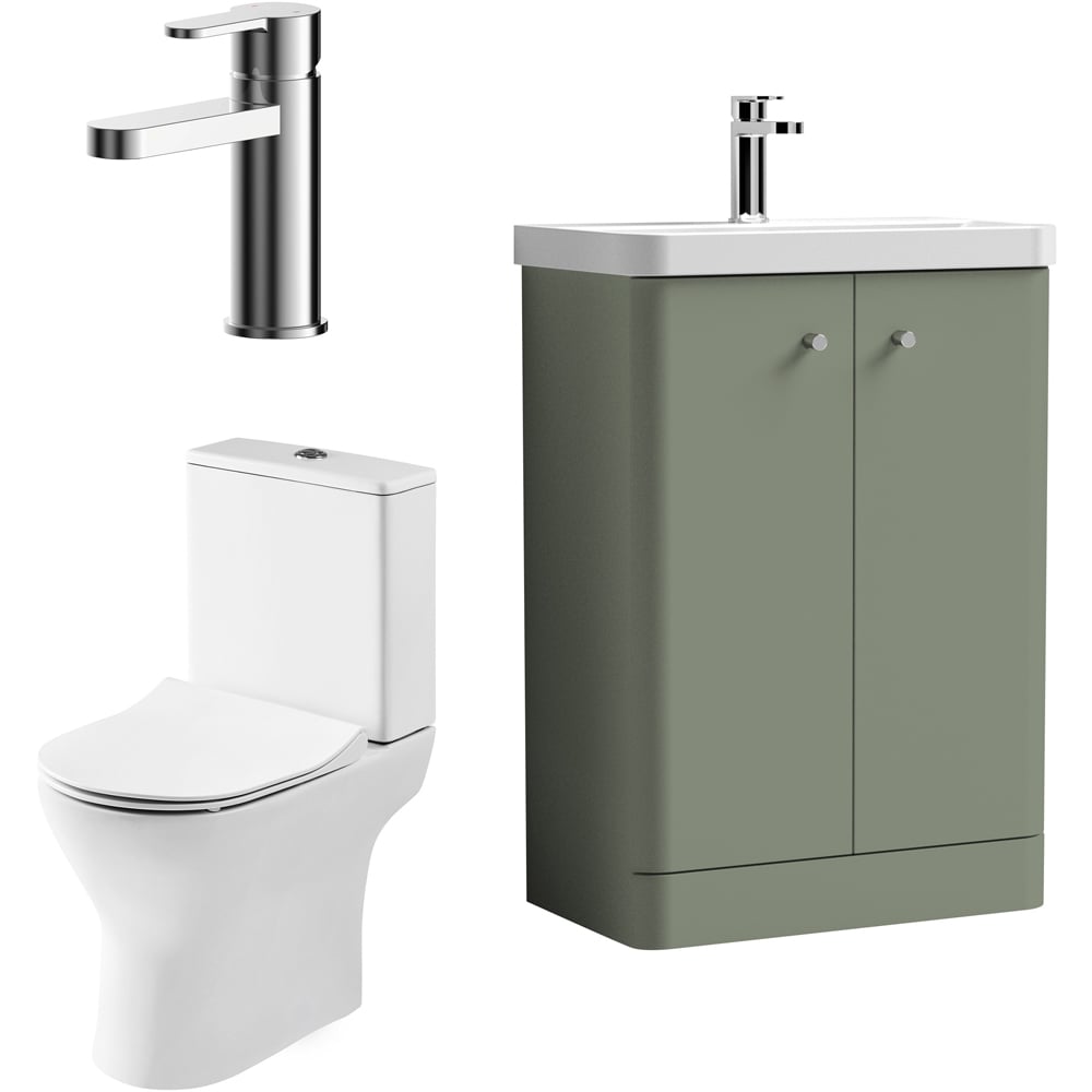 Transform bathroom spaces with a floor standing unit that combines a sleek satin green finish with practical design, integrating a basin tap and WC for a cohesive look. Perfect for those seeking a coordinated and contemporary touch, this six hundred millimetre unit delivers both functionality and a pop of colour to elevate daily routines.