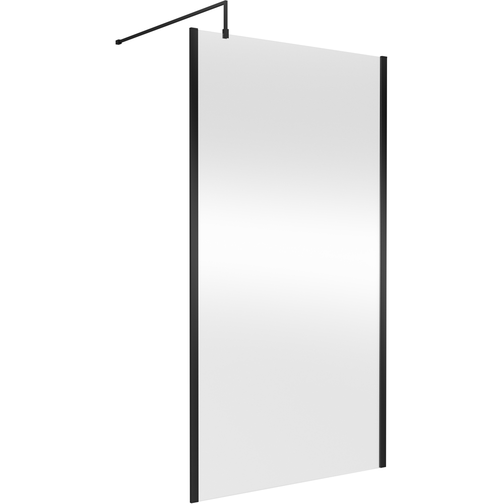 nuie Matt Black Outer Framed Wetroom Screen with Support Bar 1850 x 1100mm