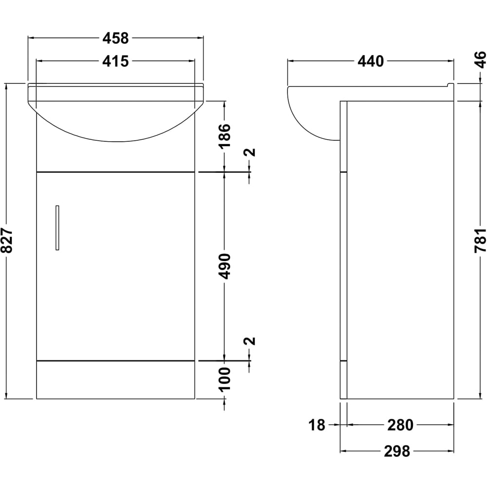 nuie Mayford Single Door Gloss White Floor Standing Vanity Unit with Square Ceramic Basin 450mm