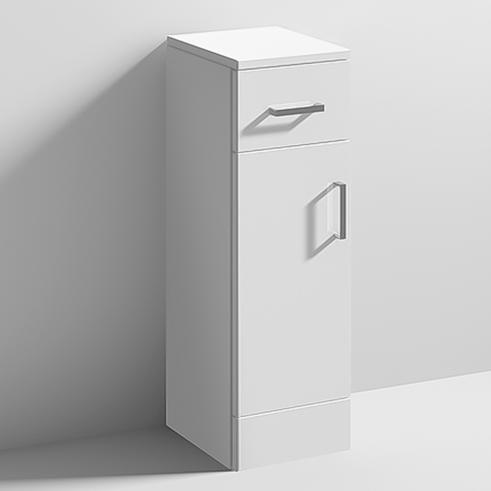 Enhance your modern bathroom with the nuie Mayford Single Door Single Drawer Gloss White Floor Standing Cupboard 250mm. Its sleek gloss white finish adds a designer touch to any contemporary space. Ideal for busy family bathrooms, this unit offers ample storage. Enjoy the quiet, smooth closing action of its soft close doors, minimizing wear and tear for long-lasting use.