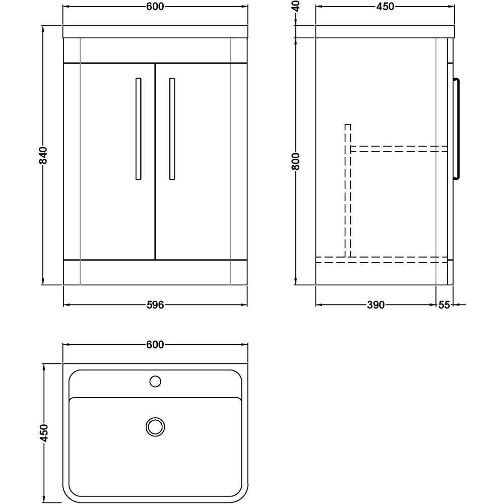 840 x 600 x 445mm