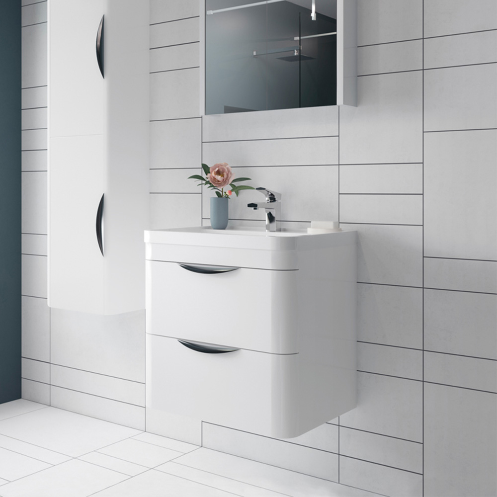 nuie Parade 2 Drawer Gloss White Wall Hung Vanity Unit and 1 Tap Hole Polymarble Basin 600mm