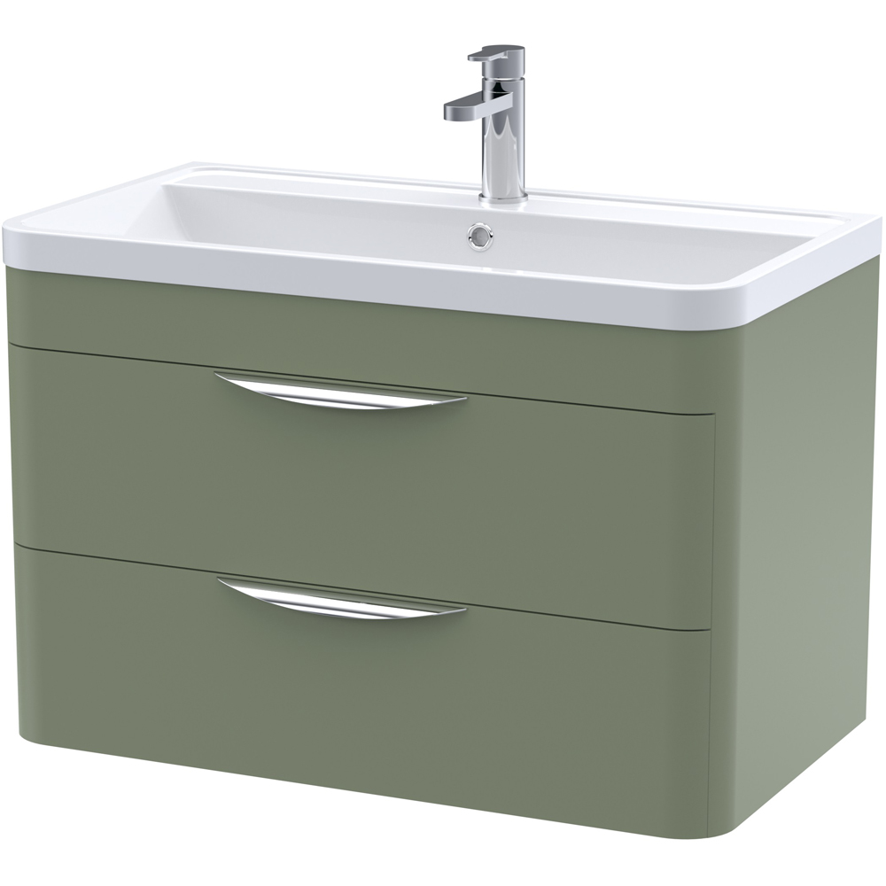 nuie Parade 2 Drawer Satin Green Wall Hung Vanity Unit and 1 Tap Hole Polymarble Basin 800mm