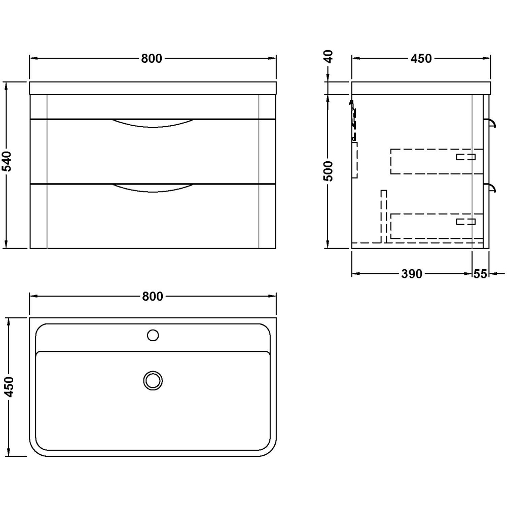 nuie Parade 2 Drawer Soft Black Wall Hung Vanity Unit and 1 Tap Hole Ceramic Basin 800mm