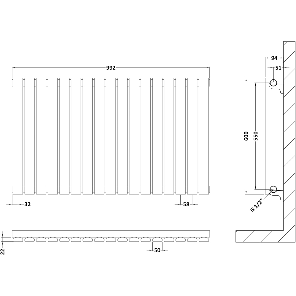 nuie Sloane Horizontal Anthracite Single Panel Radiator 600 x 992mm