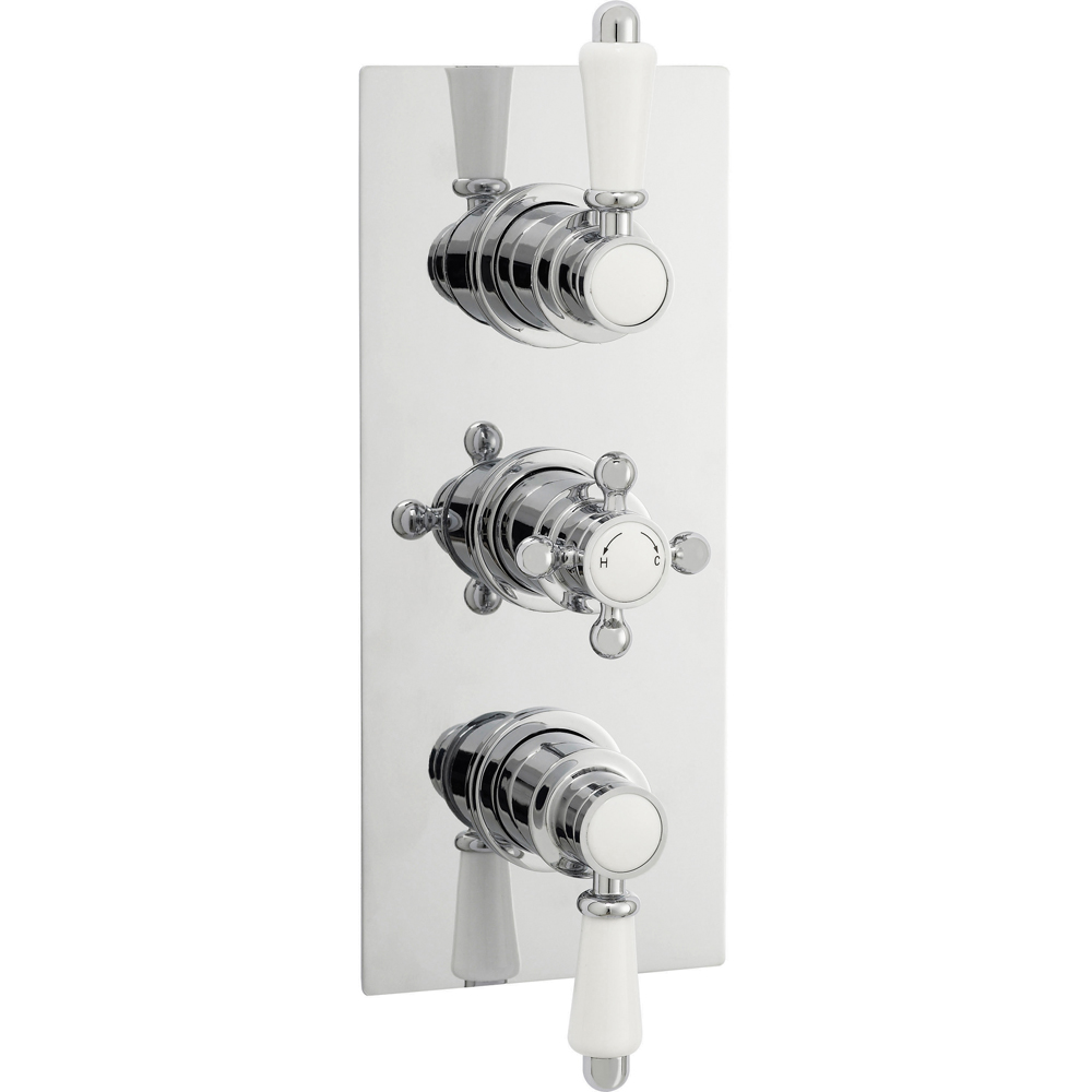Bring a touch of Victorian elegance to your bathroom with the nuie Triple Thermostatic Shower Valve. This traditional shower valve offers precise flow and temperature control, ensuring a safe and comfortable shower experience. It can be installed either vertically or horizontally, making it versatile for any bathroom layout. The valve is designed to provide full thermal protection by shutting down the water supply in case of hot or cold water failure, preventing scalding. Its unique cartridge is highly resistant to calcium build-up, even in hard water areas, and is fully reversible for easy installation. Made from high-quality brass and ABS, this shower valve is built to last and is compatible with all water systems.