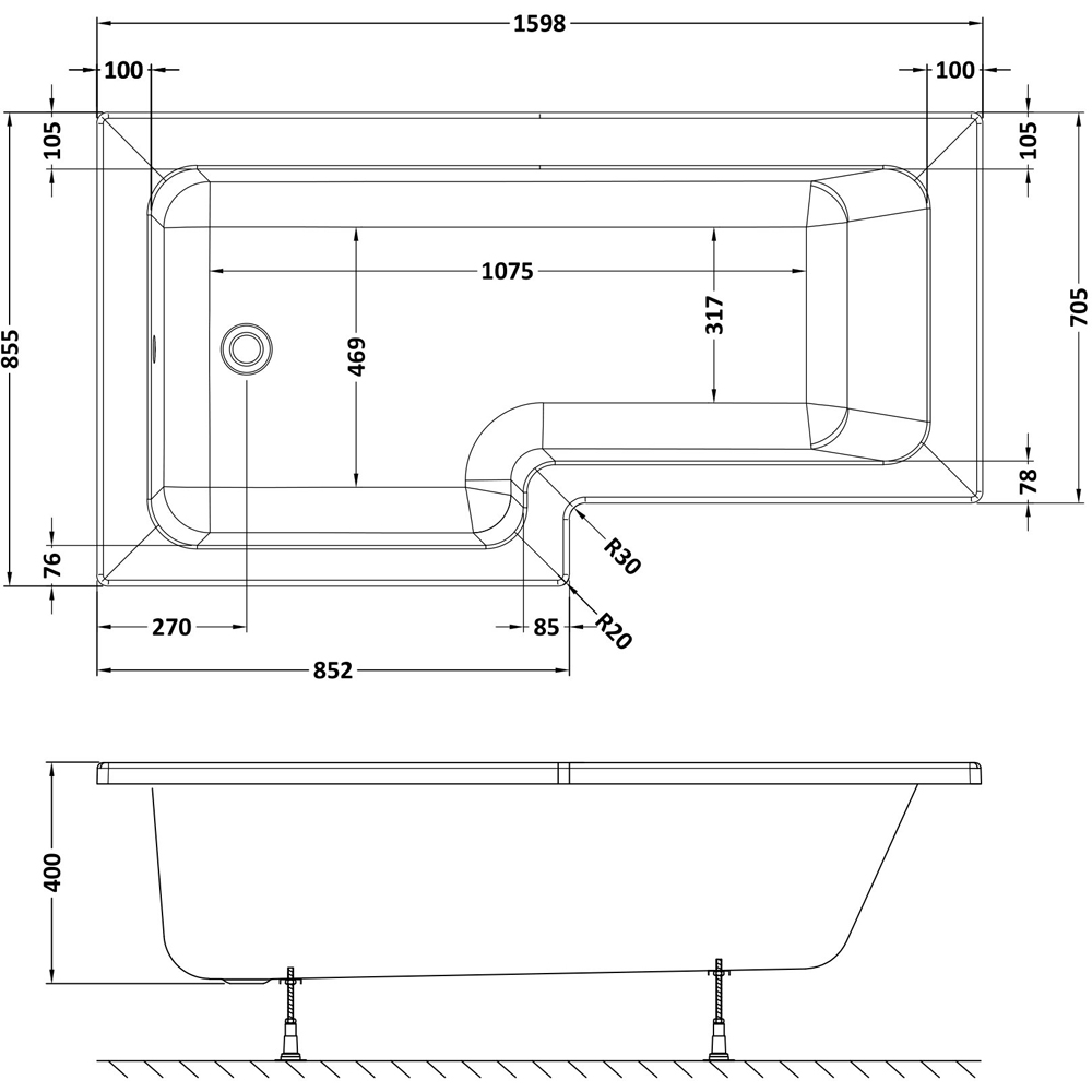 Enjoy every bath with this nuie White Left Hand Square Shower Bath 1600mm. Made from sanitary grade acrylic, this square shower bath has a high-quality white finish. It is also suitable for use with a bath screen to create a shower enclosure, a perfect space-saving option. Designed and built to the highest quality, it comes un-drilled and is supplied with a leg set. Also, bath panels are sold separately.