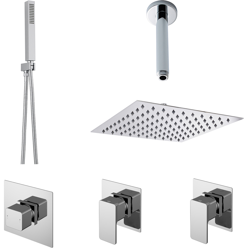 Make your bathroom more versatile with the nuie Windon Chrome 2 Outlet Double Bundle with Stop Taps. This bundle, made from brass ABS and high-quality chrome, offers a flexible design, allowing you to position the individual products to suit your needs. The bundle also features thermostatic temperature control and a hand shower complimented by divert between outlets.