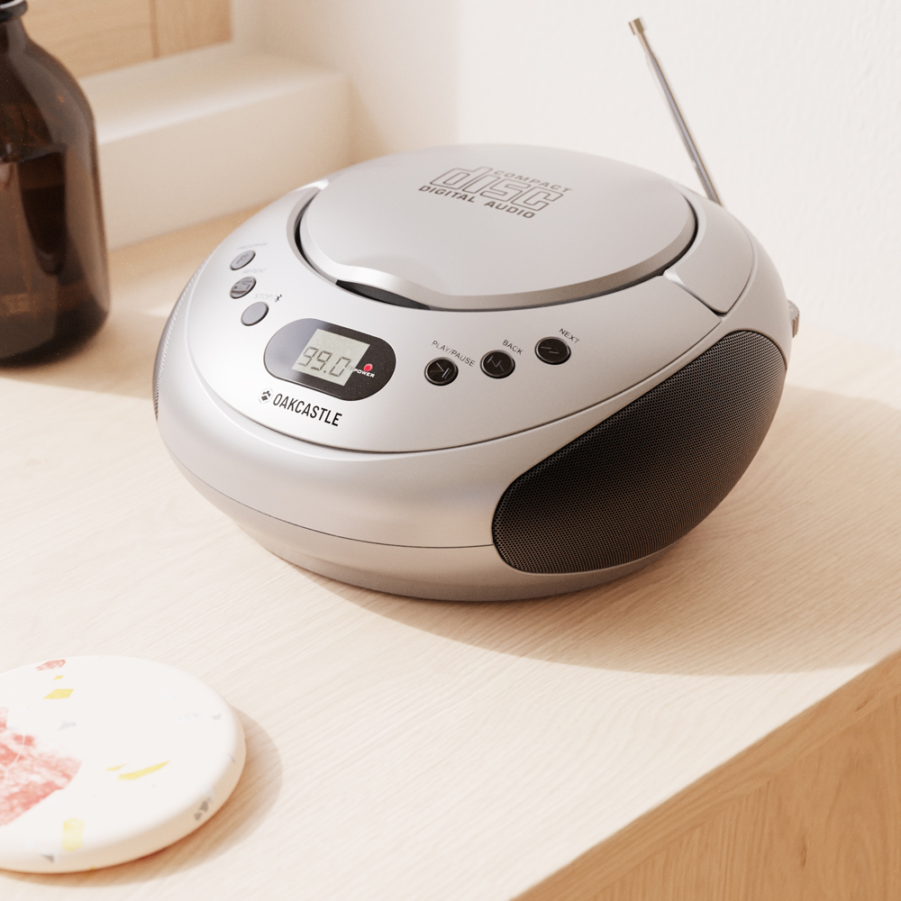 Enjoy your favourite physical albums anywhere you go with Oakcastle CD250 Portable CD Player Silver. It effortlessly streams your playlists from any device with Bluetooth functionality, allowing you to use the boombox as a powerful Bluetooth speaker.