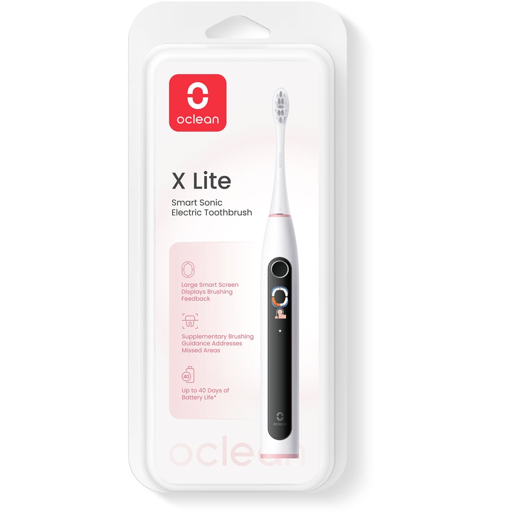 Upgrade your dental care with this Oclean X Lite Grey and Blue Smart Sonic Electric Toothbrush Set 2 Pack. This smart electric toothbrush set features a large, intuitive smart screen that tracks your brushing areas in real-time and guides you with supplementary brushing advice for any missed spots. The vibrant display provides immediate feedback on your brushing routine, all while promising an impressive battery life of up to 40 days.