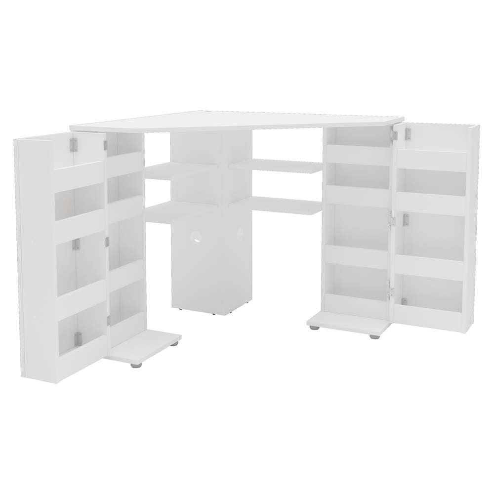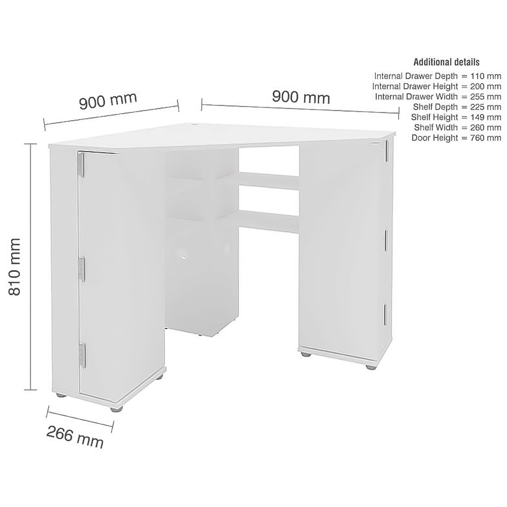 Elevate your daily makeup routine with the Olivia Corner Dressing Table in a sophisticated white hue. This exceptional vanity table stands out from the rest, offering 16 internal storage compartments to effortlessly organise and store your makeup, skincare items, jewellery, and other dressing necessities. Its spacious storage opening ensures abundant room for all your belongings. To maintain its pristine condition, a simple wipe with a dry cloth is all it takes.