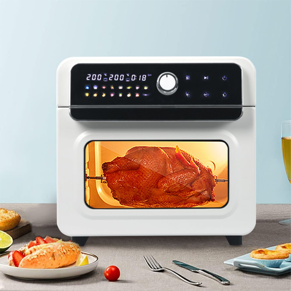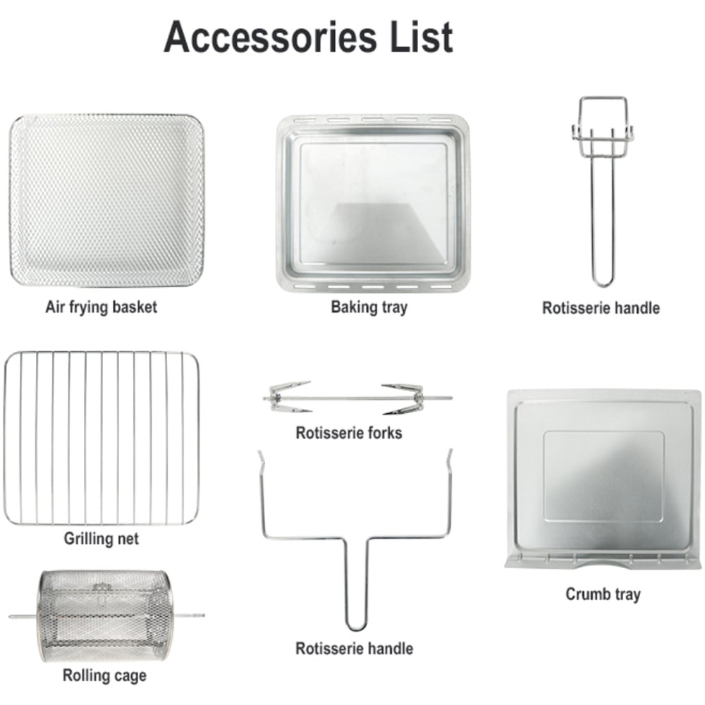 Cook delicious home-cooked meals with this Ometa 81053 White 28L Air Fryer Oven 1500W. A perfect cooking appliance for your home, it sports a cream hue to complement your kitchen and has a generous 28L cooking capacity. This air fryer features 16 cooking modes for added ease. It allows you to cook in up to 3 trays at once and offers an adjustable timer, thermostat, and a pre-set function to help customise your cooking. This air fryer comes with included air fryer basket, baking tray, air racks, rolling basket, rotisserie spit and forks, rotisserie handle, and a crumb tray. With this air fryer, enjoy home-cooked meals with your friends and family.