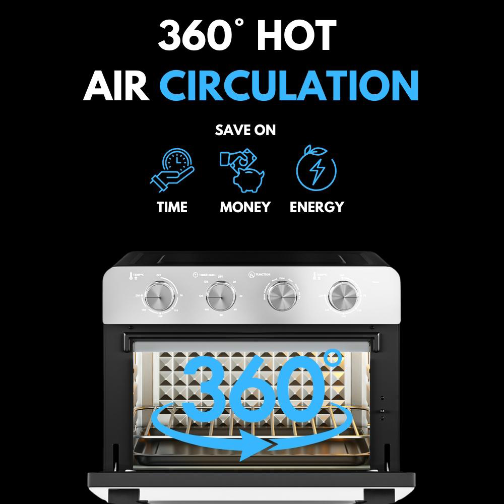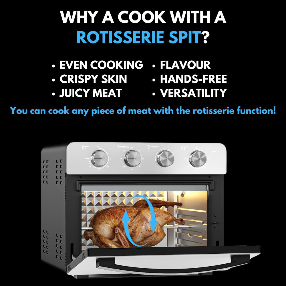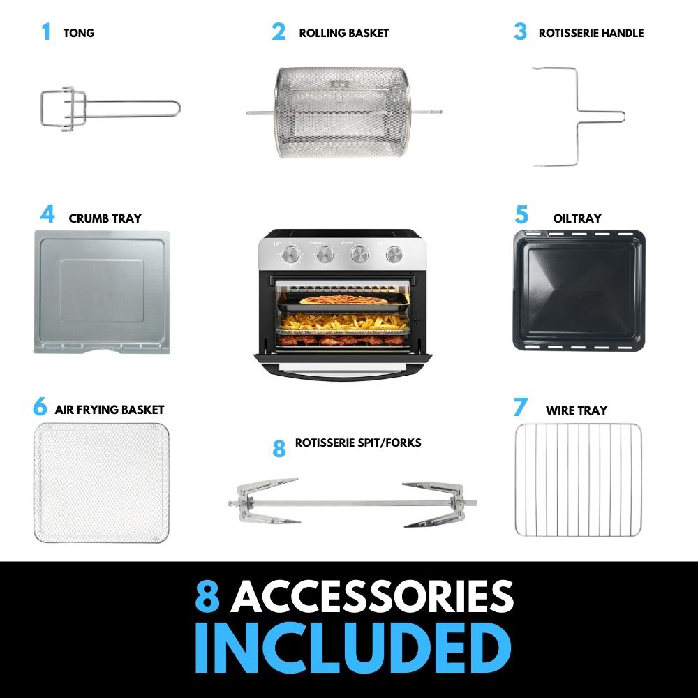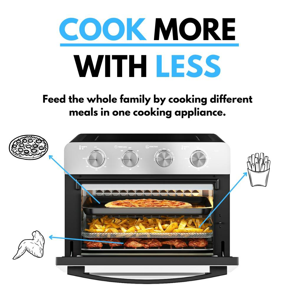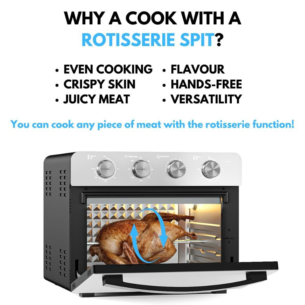 Introducing the Ometa mirrored 25L air fryer oven. With a generous cooking capacity, 7 cooking modes and included attachments, this air fryer oven is the perfect cooking appliance for your home! You won’t need anything else. Included attachments include: an air fryer basket, baking tray, wire rack, rolling basket, rotisserie spit and forks, rotisserie handle, and a crumb tray. All of which are perfect for cooking up a delicious meal! Cook in up to 3 trays in your air fryer oven at once and customise your cooking using the adjustable timer and thermostat or using a pre-set function. Your options are endless. Dimensions: W41.5cm x D41.3cm x H35.7cm Packing Dimensions: W48.5cm x D45.5cm x H43cm Packing Weight: 11kg. Sizes are approximate.