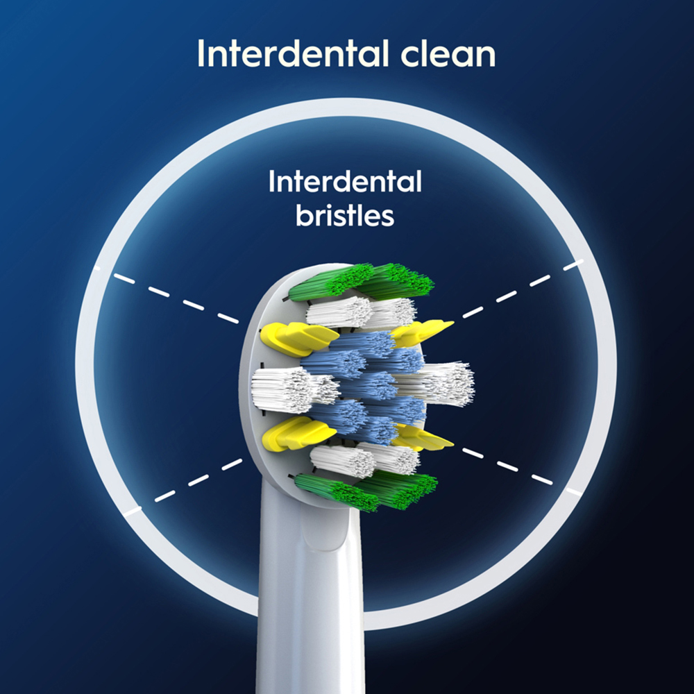 Make a compact and functional addition to your oral hygiene routine with the Oral-B Floss Action X-Filaments Replacement Head 4 Pack. These toothbrush heads feature specifically engineered micropulse bristles that loosen plaque to remove up to 100% more plaque compared to a regular manual toothbrush. These genuine brush heads are designed with new interdental and X-shape bristles that clean in areas that round ones cannot reach. Its brush head usage indicator turns bristles from green to yellow showing you when to change for 100% cleaning efficacy. It ensures a guaranteed fit with Oral-B electric rechargeable toothbrushes except Pulsonic and iO toothbrushes.