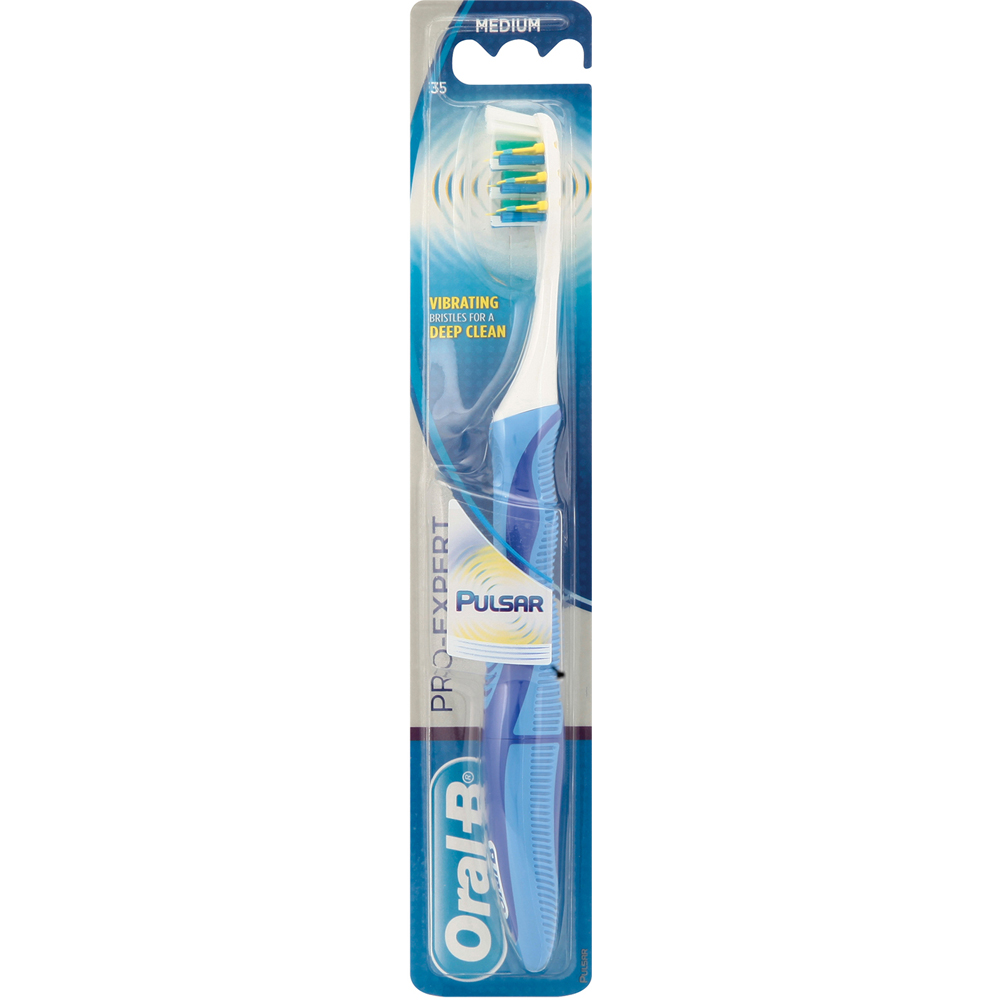 Unlock the secret to a dazzling smile with the Oral-B Pulsar Pro-Expert Manual Toothbrush with Battery Power. This innovative battery-operated toothbrush features 35 vibrating tufts that deliver deep clean. It effectively removes plaque far more efficiently than a traditional manual brush. This toothbrush allows an experience of the refreshing, smooth sensation of perfectly clean teeth after every use.