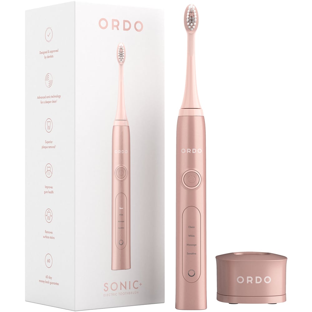 The Ordo Sonic+ Toothbrush, designed and approved by dentists, is a high-quality and stylishly designed electric toothbrush that offers a deeper, bespoke cleaning experience. With 40,000 sonic pulses per minute and four bespoke brushing modes, it ensures effective plaque removal and promotes healthier, whiter teeth. Plus, it comes with a 60-day money-back guarantee. 60-day guarantee. 2 year warranty. 40,000 sonic pulses. 4 brushing modes. 4+ weeks Li-ion battery. Smart 2-minute timer. Quad pacer. High-quality bristles. Travel cap included. Waterproof design. Suitable for dental work.