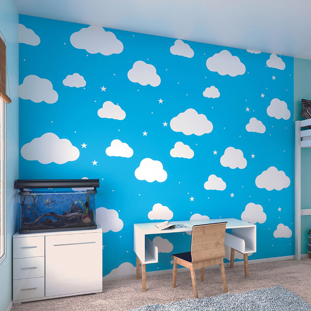 Cartoon animals from around the world are showcased in this engaging and educational design. Mammals, fish, birds and reptiles all depicted in bold colours are dotted around the mural.