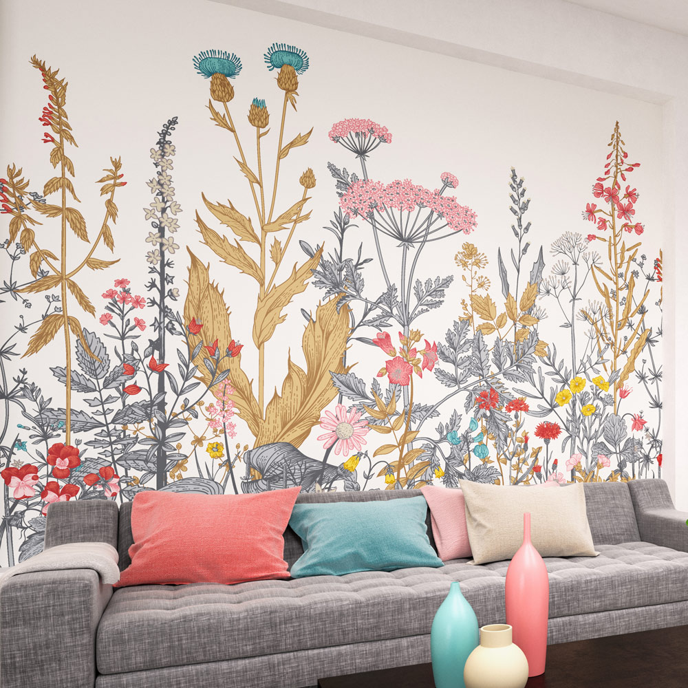 Bring your room to life with this Origin Murals Botanical Fleur White Wall Mural. This wall mural features small, intricately sketched leaves and buds that create an entanglement of colour. It also has larger floral blooms flourishing vertically, weaving their way up to striking heights. The mural also features a striking design with shading and fine detailing against a flat ground to create contrast. This mural has a complete design on one roll. It comes with cut guidelines and hanging instructions included. Application: paste the wall.