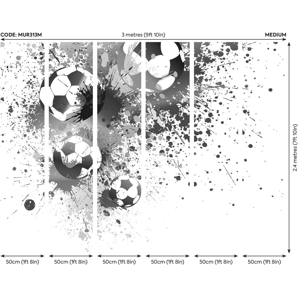 Add instant charm to your space with this Origin Murals Football Splash Grey Wall Mural. This mural features a bold and vibrant design bursting with colour and dynamicity. Its loud and playful design takes football to a whole new level. This mural has a complete design on one roll. It comes with cut guidelines and hanging instructions included. Application: paste the wall.