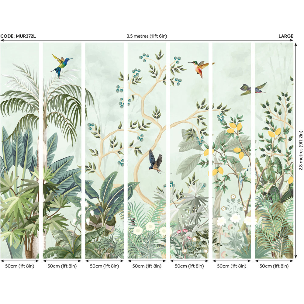 Upgrade your place with Origin Murals Lemon Tree Forest Green Wall Mural. Intricately painted leaves, petals and birds create a charming feel to this design, with lemons dotted amongst branches and vines, adding little splashes of vibrancy and life.