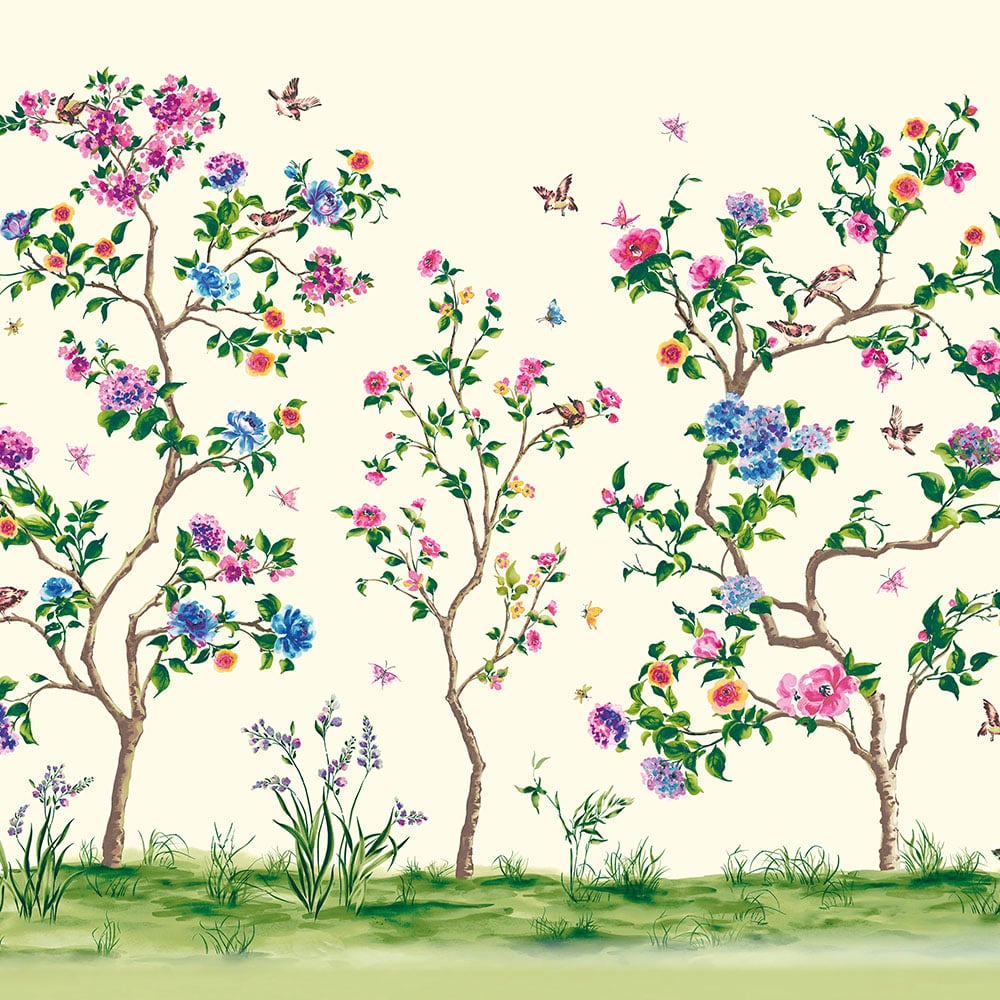 Enhance your living space ambience with this charming Origin Murals Oriental Flower Tree Cream and Pink Wall Mural. A beautifully hand-drawn chinoiserie mural, it flaunts a variety of watercolour flowers, trees, birds and butterflies sitting on a rolling landscape. It's designed to effortlessly bring botanical garden serenity into your home so you can elevate your home's decor with ease. This mural also offers an easy, paste-on-the-wall application for your convenience and comes with cut guidelines and hanging instructions for added ease. Size: 3.5 x 2.8m.