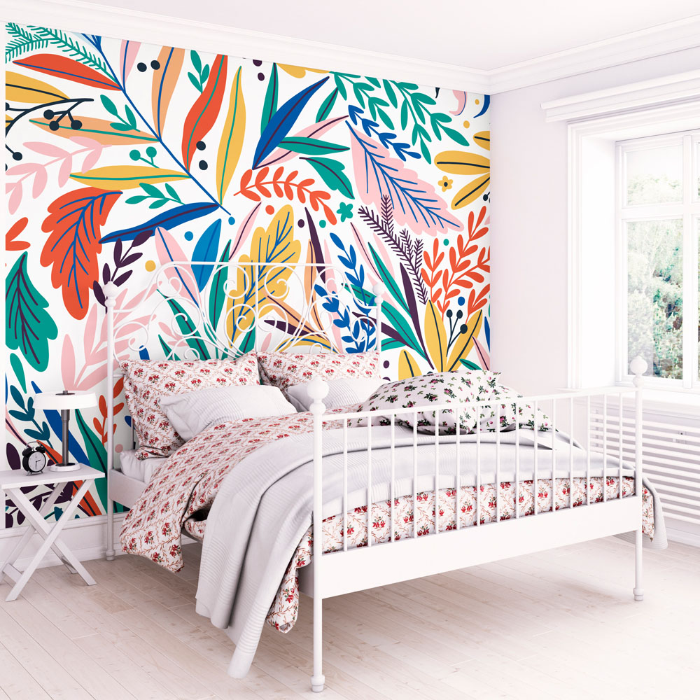 Bring your room to life with this Origin Murals Patterned Leaves Multicolour Wall Mural. This simple yet contemporary mural has an array of illustrative leaves, stems, and graphic foliage. It features a multidirectional design that creates liveliness with deviating dots and little petals that can go with any decor. This mural has a complete design on one roll. It comes with cut guidelines and hanging instructions included. Application: paste the wall.