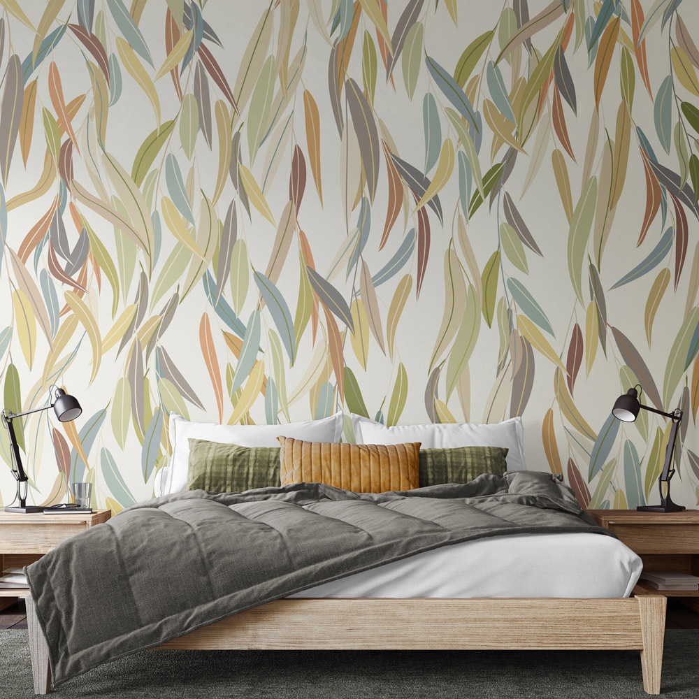 Make a soothing addition to your home decor with the Origin Murals Willow Trees Multicolour Wall Mural. This mural features simple, willow leaf shapes that overlap each other, creating dimension and movement as they float toward the ground. This subtle design is bound to create a sense of serenity within your space and is ideal for creating an eye-catching feature wall. This mural features a complete design on one roll. Guidelines for cutting and hanging instructions are included. Application: Paste the wall. Size: 3m x 2.4m.