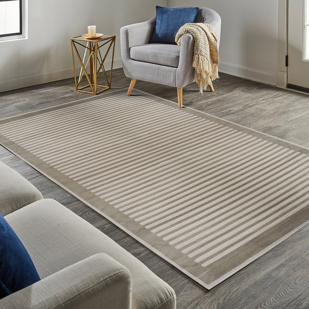This classic and contemporary Belgrade Rug from Origins is created with a blend of soft natural tones in a simple stripe design in natural with a bold border that would elevate any room. Made from a mix of polypropylene and polyester, this rug is both easy to care for and beautifully soft with an added sheen that will have the colour changing depending on the light! It also has an anti-slip grip which makes it suitable to use on all surfaces while preventing slipping, adding cushion and improving durability. Size: 120 x 170cm. Care and use: Vacuum or spot clean only. Don’t use a beater bar. Professional cleaning is recommended.