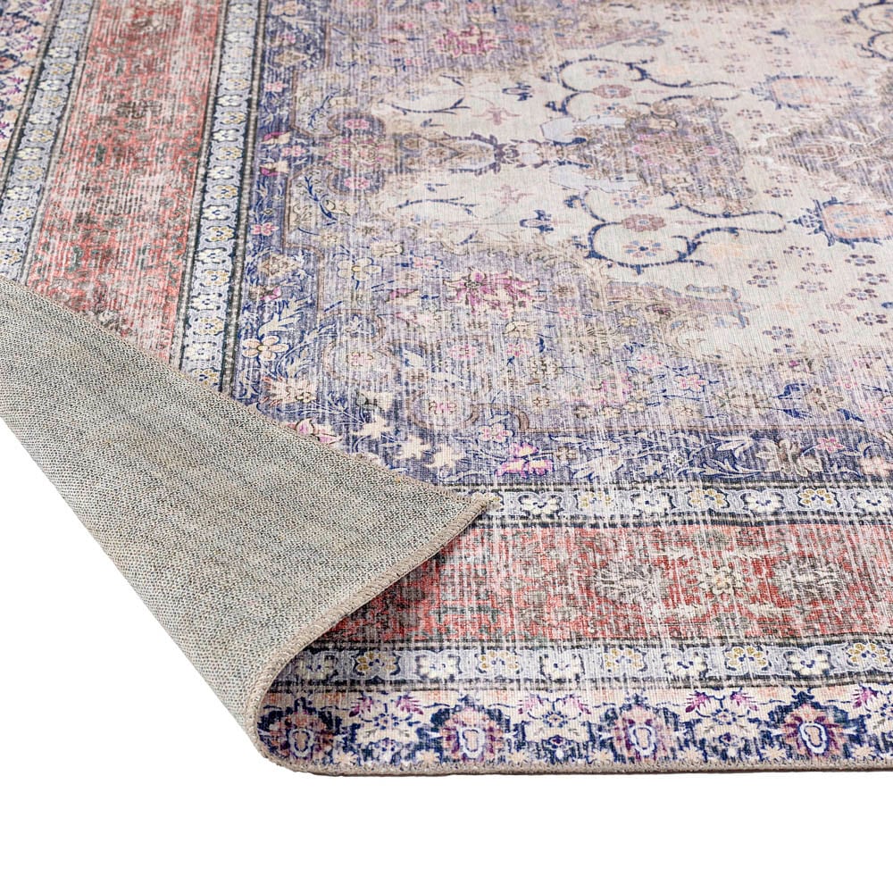 Make an exquisite addition to your home decor with the Origins My Washable Croft Rug 120 x 170cm. This easy-care rug is an excellent solution for busy households where spills are bound to occur. This rug features a distressed look with tones of red, purple, blue and cream that blend effortlessly with all types of modern and traditional interior spaces. The elaborate border with a medallion design in the centre is a classic Persian style design. It is ideal for high-traffic areas like the kitchen, hallway, dining room and living rooms. It is crafted using soft yet hard-wearing chenille fabric with a non-slip backing, so you can easily lay down the rug before and after washing. Care and use: Machine wash at 30°C, do not use bleach. Line drying is recommended. If using a dryer, do not use heat, use an air-only dry cycle.