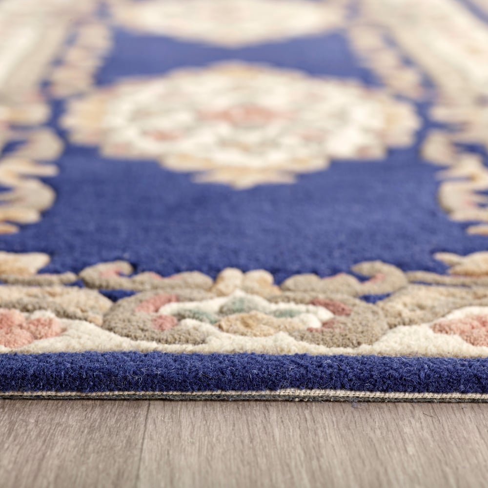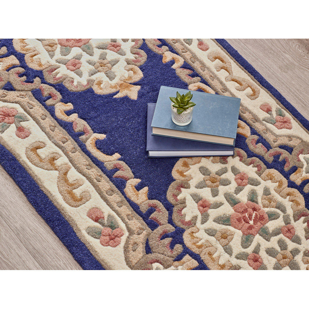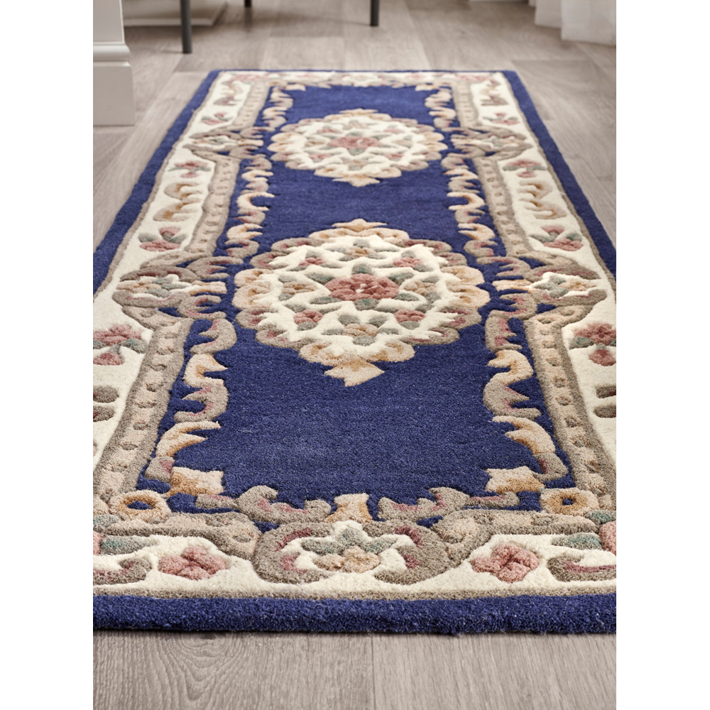 Give a touch of traditional design to your decor with this Shensi Runner from Origins. Available in a classic navy colour, this lovely range is suitable for all over your home. Hand-tufted by expert rug makers from the finest 100% pure wool, this classic rug is long-lasting and offers great value for money. It also has an anti-slip grip which makes it suitable to use on all surfaces while preventing slipping, adding cushion and improving durability. Size: 67 x 210cm. Care and use: When vacuuming, do not use a beater bar.