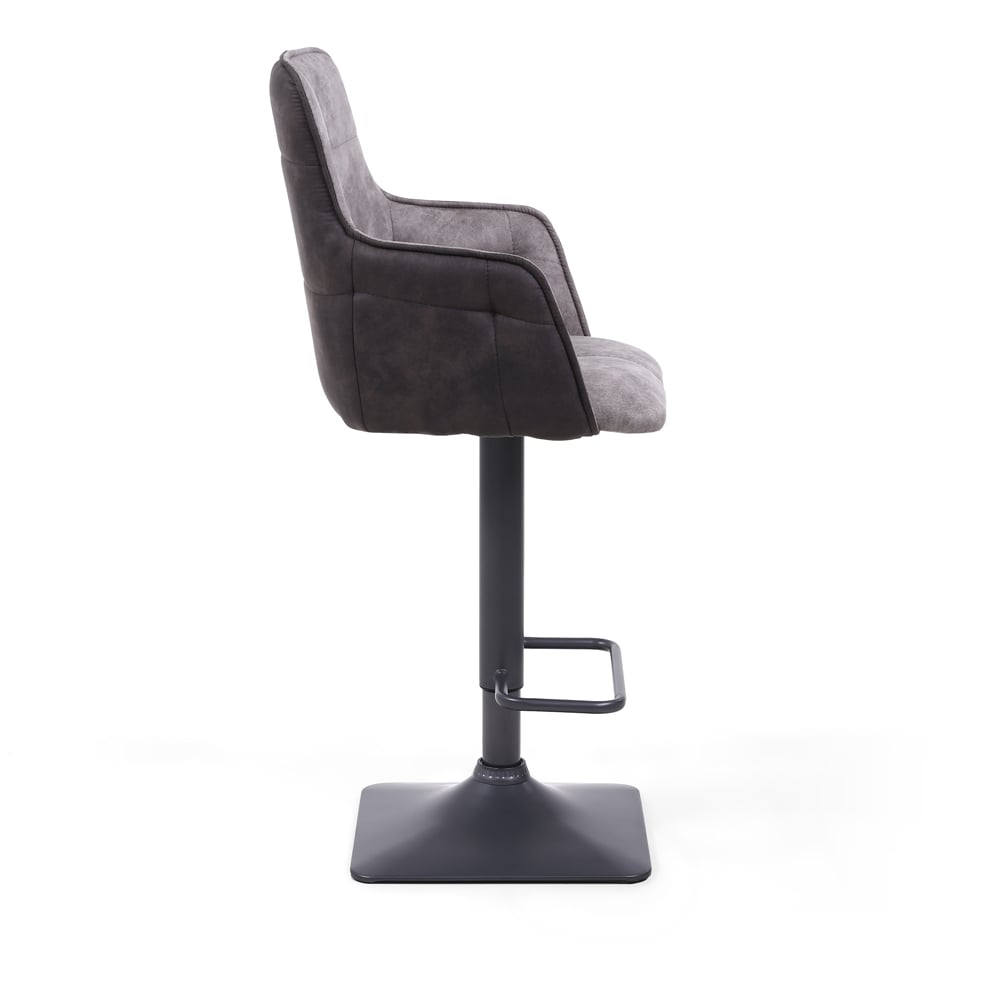 Looking for a unique and stylish addition to your home bar or kitchen island? Look no further than these Orion Suede Effect Light Grey Bar Stools! With their distinctive twin-tone suede effect fabric, these stools are sure to turn heads. The light grey padded upholstered seat provides comfortable seating, while the dark grey on the rear adds a touch of sophistication. The height is adjustable up to 120cm, and the iron grey square base comes with a signature bar footrest. Please note that assembly is required, and these stools are sold in boxes of two.