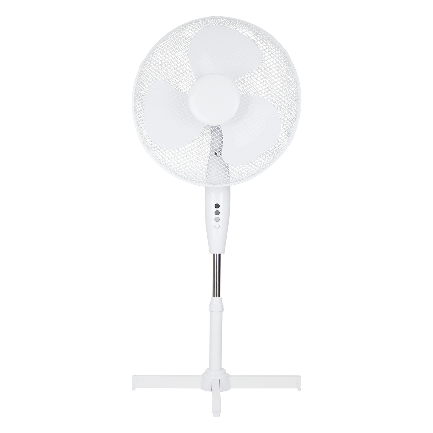 Stay cool and comfortable in any space with the Oscillating White Stand Fan. This adaptable fan is height-adjustable, allowing you to direct airflow exactly where you need it. With three speed settings conveniently controlled through front buttons, you can easily customise your comfort level. Its classic white finish ensures a harmonious blend with any decor theme while providing a stable base with crossbar feet.