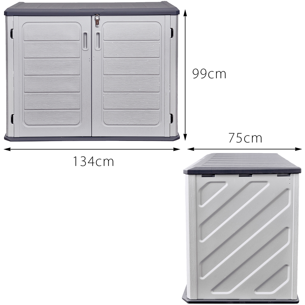 Oseasons Heavy Duty 5ft Outdoor Storage Box is made with double-wall HDPE for extra durability. Features steel reinforced and spring-hinge lid. Comes with double front doors with lockable design. It has weatherproof and fade-resistant build. Quick and easy self-assembly setup. This Heavy-Duty 5ft Plastic Outdoor Storage Box offers a robust, weather-resistant solution for storing garden cushions, tools, toys, and more. Constructed from double-wall high-density polyethylene (HDPE) and reinforced with powder-coated steel bars, it delivers superior durability compared to standard single-wall boxes. Designed to endure the UK's harsh weather conditions, this storage unit won’t warp, crack, fade, or stain over time. Features include a non-slip PVC floor for added safety, wide double-opening doors for easy access, and kit-form delivery with full assembly instructions for quick setup. 1 x Oseasons® Heavy Duty 5ft Outdoor Storage Box. W: 134cm, D: 75cm, H: 99cm. Weight: 32.6kg REF: 107254.