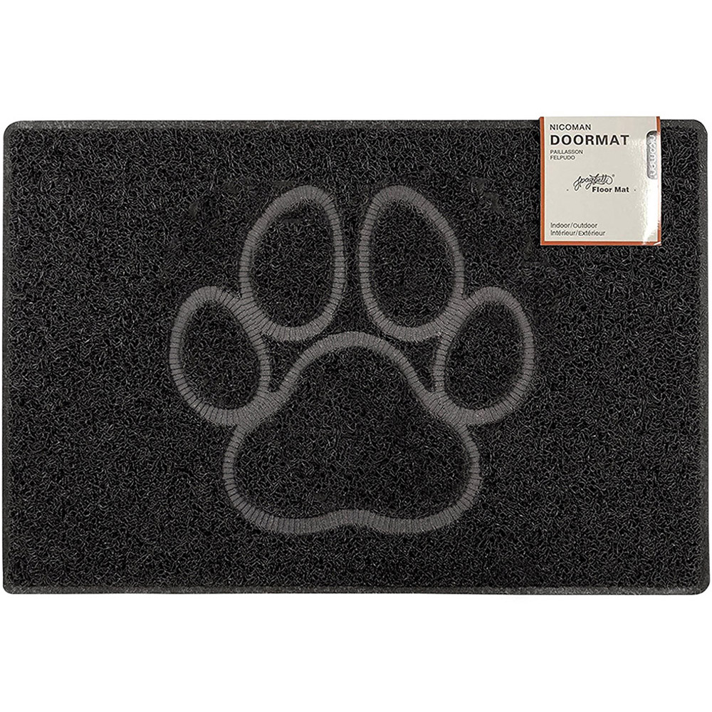 Oseasons Paw Medium Embossed Doormat in Black - Robust and Tough, perfect for Outdoor Use or Pets - Traps Dirt Better and Easier with the Spaghetti Coil Design - No Damage to Shoes or Pet's Paws with the Flexible Coils - Cushioned and Comfortable Design - Fire Retardant and UV Stabilised the Mats feature a Flexible Spaghetti Coil design, to trap and remove dirt more effectively than other Mat types. Due to the flexibility of the coils, the Mat is soft and cushioned to your feet or your Pet’s paws, allowing no abrasion or damage. This Mat works great as a Cat Litter Tray Mat or Feeding Mat. 1 x Oseasons Paw Medium Embossed Doormat in Black . W: 75cm, D: 44cm, H: 1cm. Weight: 1kg REF: 106020.