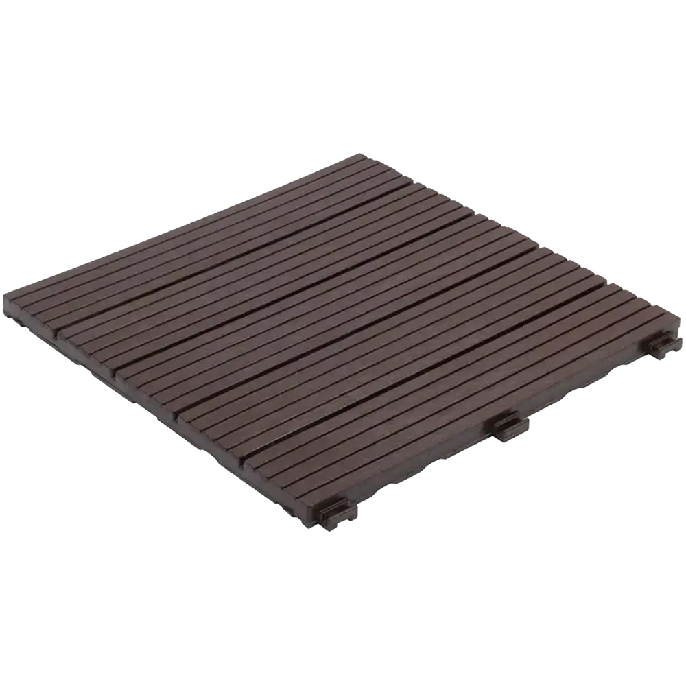 Enhance your outdoor space with the Oseasons Cosmopolitan ECO Interlocking Decking Tiles in Coffee. This pack of 10 tiles, each measuring 30 x 30cm, is crafted from 100% recycled rubber, ensuring durability and eco-friendliness. The 1.5cm thick design features integrated drainage channels, making them water-resistant and non-slip for added safety. With an easy Quick-Click Interlocking System, installation is hassle-free and perfect for DIY enthusiasts. These tiles are designed to withstand all weather conditions, maintaining their sleek appearance year-round. Ideal for patios, balconies, and other outdoor areas, they provide a stylish and practical solution for transforming your space. Each tile weighs 0.68kg, adding a cushioned and supportive surface that's gentle on the feet.