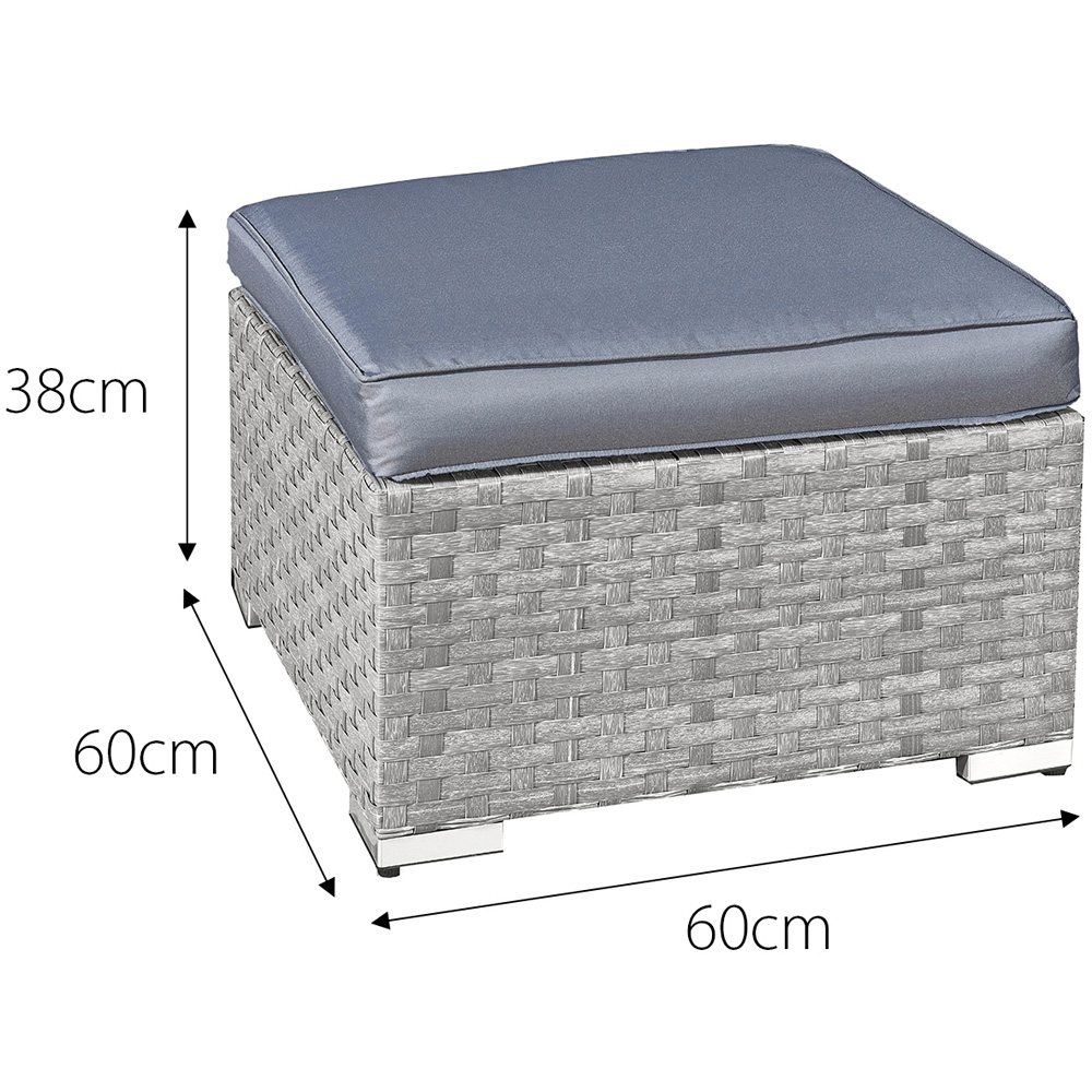 Enhance your outdoor relaxation with the Oseasons Malta Dove Grey Rattan Footstool. Crafted from weatherproof, premium UV-stabilised PE rattan, this footstool is designed for year-round outdoor use. The high-quality metal frames ensure durability and stability, making it a reliable addition to your garden or conservatory. The oversized footstool measures H45 x W65 x D65cm, with a weight of 5kg. Some assembly is required.