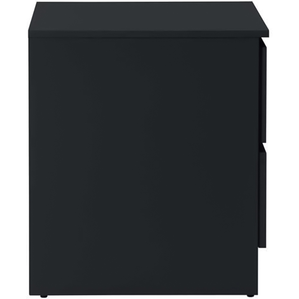 Elevate your bedroom decor with the Oslo Bedside Table. This black bedside table has a splendid design with a sturdy structure. It features a smooth top for keeping your alarm clock or display items with sleek grooved handles and a sturdy base. It also features a two-drawer design with ample storage space for your essentials. This bedside table crafted using durable material is ideal for all types of contemporary and traditional interior spaces.