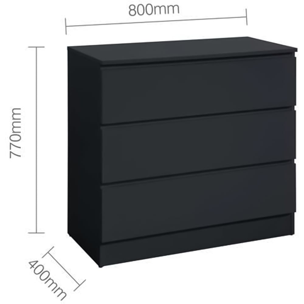 Enhance the beauty of your home decor with the Oslo Chest of Drawers. This black drawer chest has a splendid design with a sturdy structure. It features a smooth top for keeping your display items with sleek grooved handles and a sturdy base. It also features a three-drawer design with ample storage space for your essentials. This drawer chest crafted using durable material is ideal for all types of contemporary and traditional interior spaces.