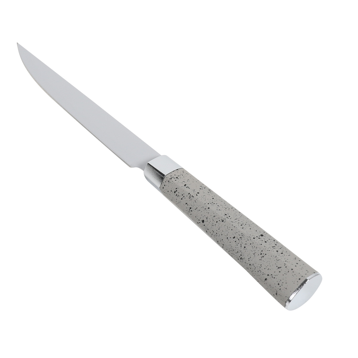 The Oslo 3-Piece Knife Set will be a practical choice for any kitchen. The set includes a paring knife, a utility knife and a chef knife - offering everything you need to cater to all your cutting chores. Each knife boasts a stainless steel construction with a non-stick coating to prevent products from sticking. These durable blades are paired with solid plastic handles designed in a matching grey with a fleck effect. These handles have a soft-touch finish to make your experience safe and comfortable. Pretty and practical, it makes a complete starter set for any household.