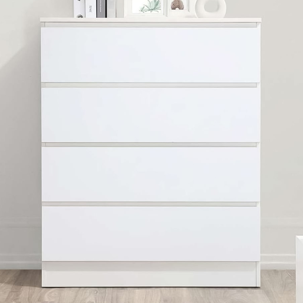 Enhance the beauty of your home decor with the Oslo Chest of Drawers. This white drawer chest has a splendid design with a sturdy structure. It features a smooth top for keeping your display items with sleek grooved handles and a sturdy base. It also features a four-drawer design with ample storage space for your essentials. This drawer chest crafted using durable material is ideal for all types of contemporary and traditional interior spaces.