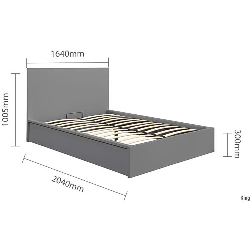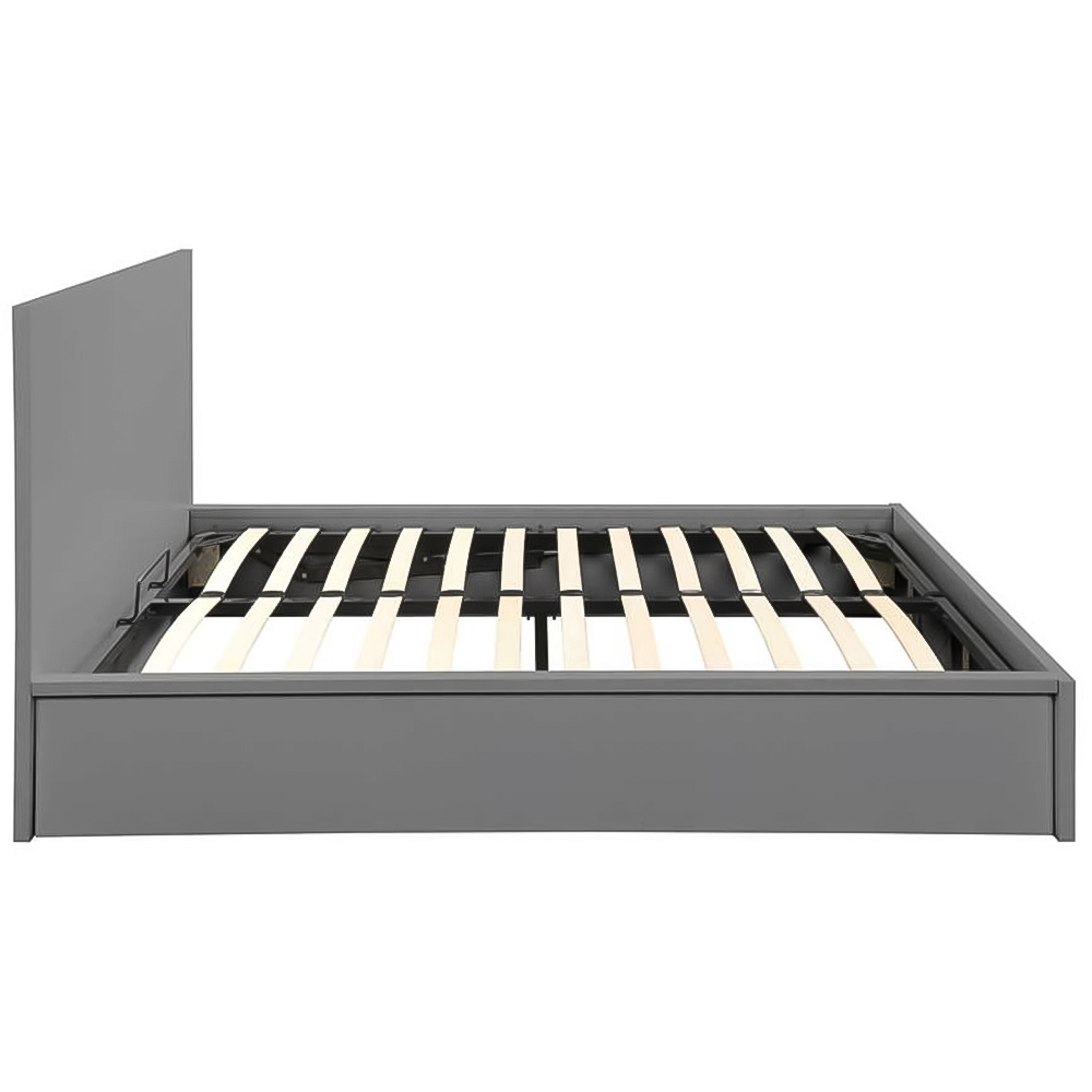 Uplift your bedroom decor in a classy way with this Oslo King Size Ottoman Bed. This grey-coloured bed has a streamlined design and minimal grooved handles with a sleek finish that perfectly matches any contemporary decor. It provides both class and practicality, with an opening base with plenty of storage. The bed also features a solid slatted base, which provides firmer support and allows air to circulate beneath the mattress. With its sleek, modern design, this bed can change the look of your bedroom decor. Please note: These beds are only suitable for a UK standard-size mattress. Care instructions: Wipe carefully with a soft, dry cloth.