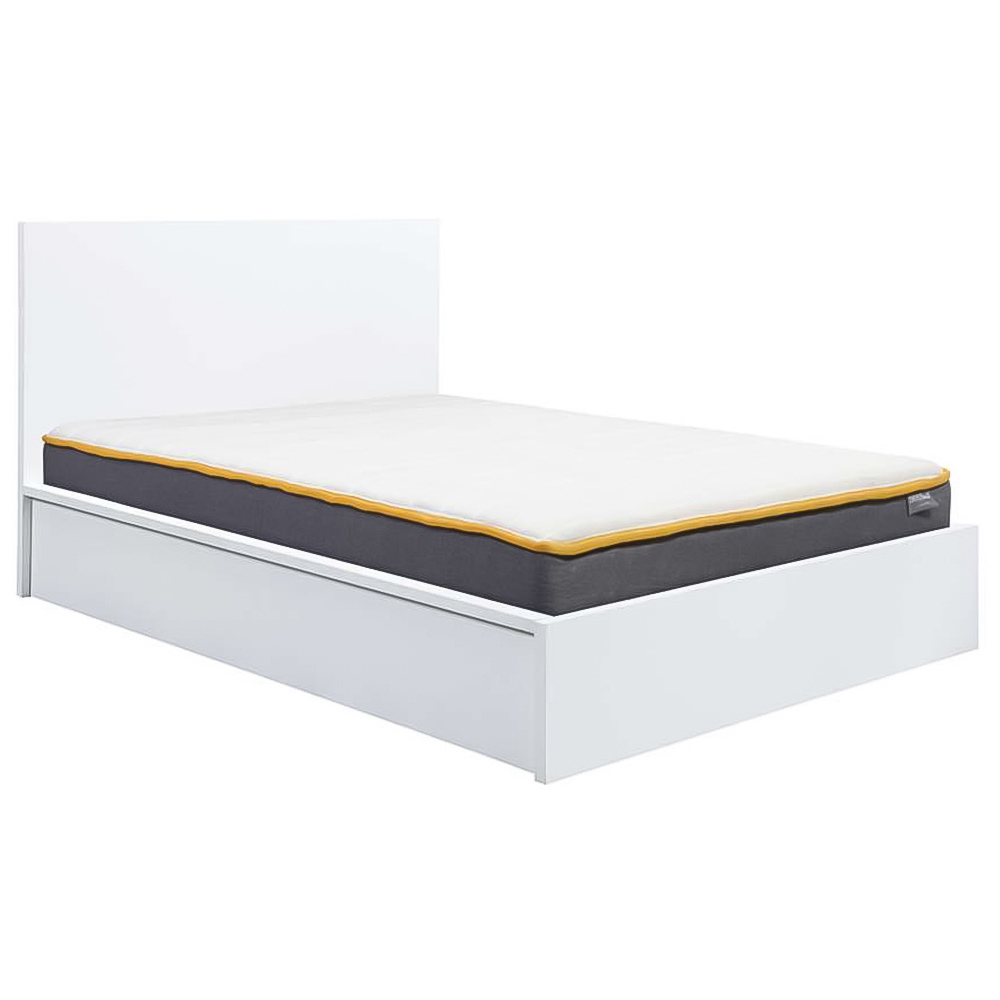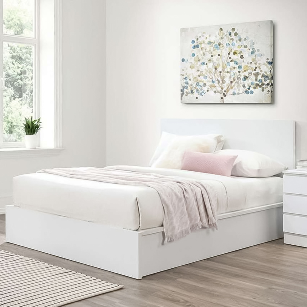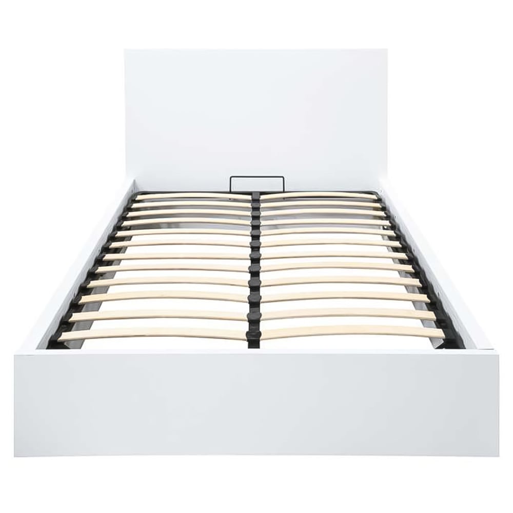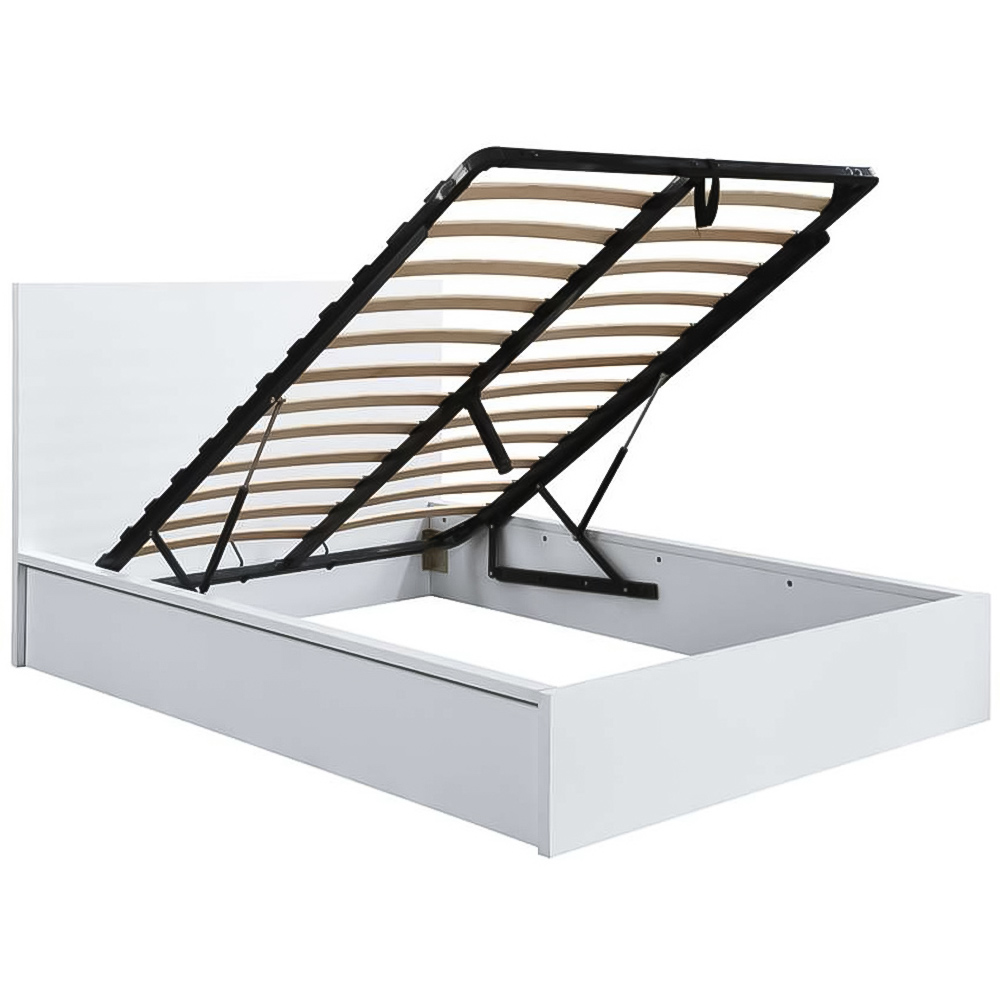 Uplift your bedroom decor in a classy way with this Oslo King Size Ottoman Bed. This white-coloured bed has a streamlined design and minimal grooved handles with a sleek finish that perfectly matches any contemporary decor. It provides both class and practicality, with an opening base with plenty of storage. The bed also features a solid slatted base, which provides firmer support and allows air to circulate beneath the mattress. With its sleek, modern design, this bed can change the look of your bedroom decor. Please note: These beds are only suitable for a UK standard-size mattress. Care instructions: Wipe carefully with a soft, dry cloth.