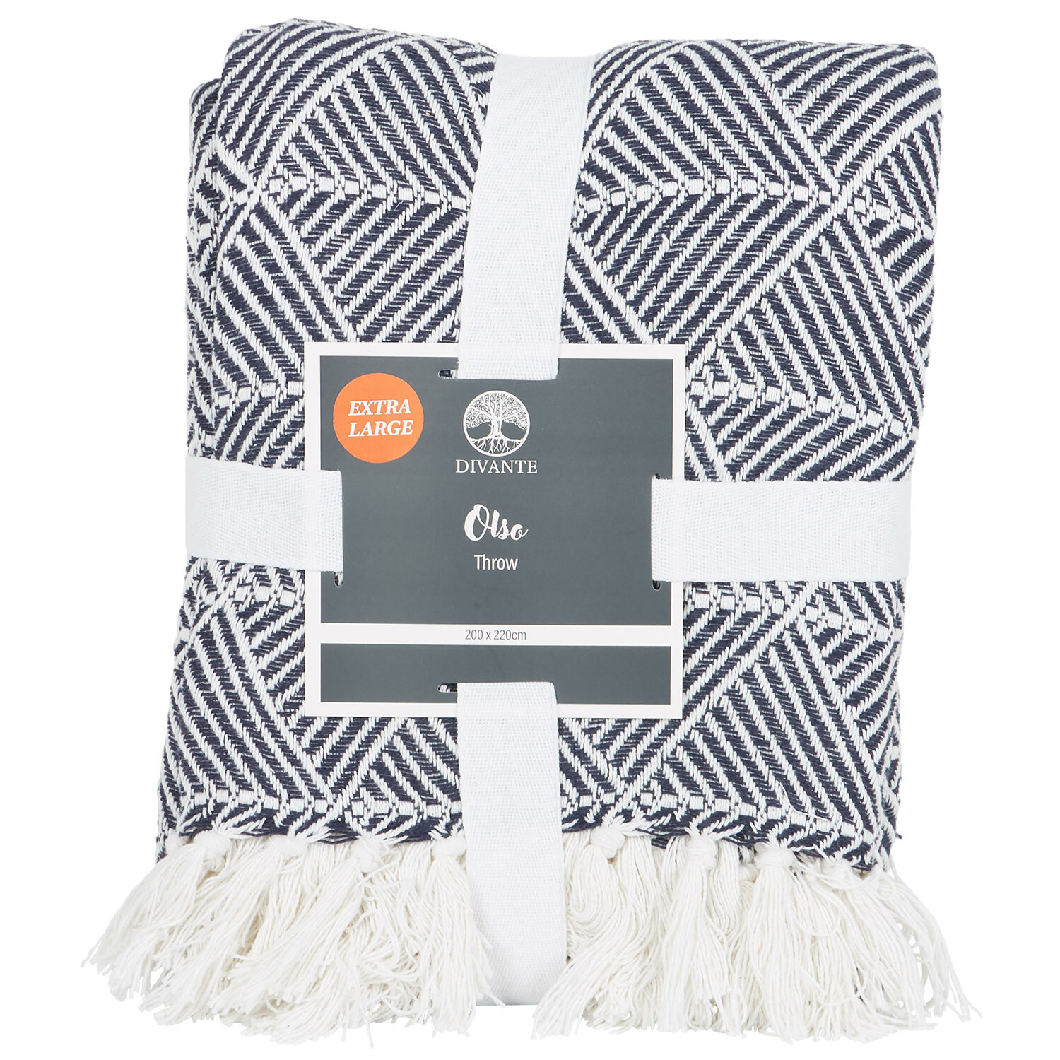 Add a modern touch to your living space with the Oslo Navy Geometric Throw. It features a bold geometric pattern and stylish design. Perfect for draping or layering, it combines comfort and style effortlessly. Crafted from cotton, it is soft to the touch and provides warmth.