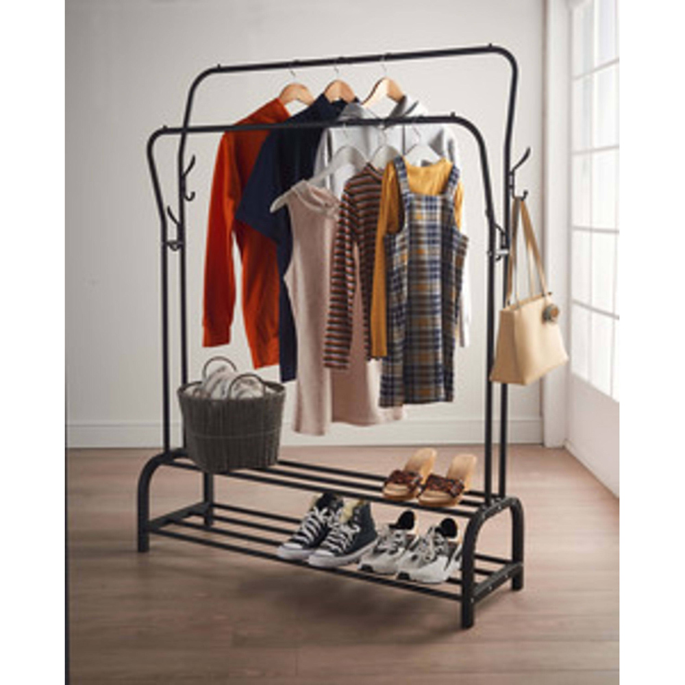 Florence Seaford 2 Shelf Oak and Black Metal Clothes Rack
