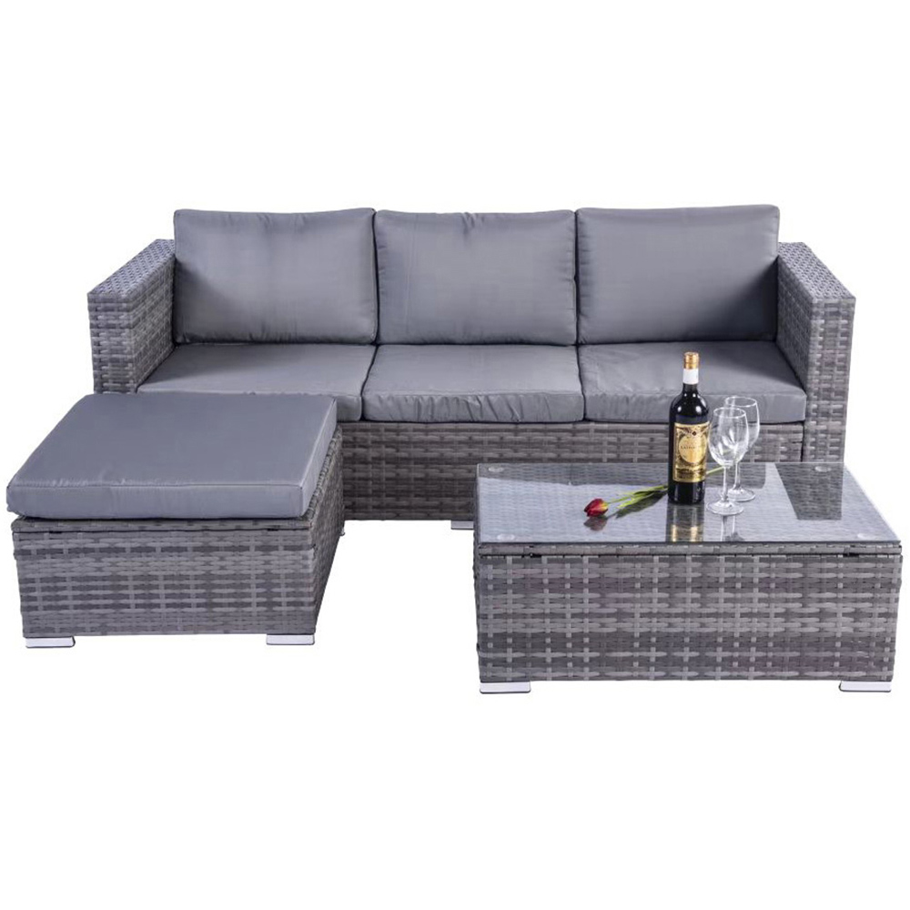 Complete your garden with this Outdoor Living Dunham Grey Rattan 4-Seater Garden Sofa Set. Designed in contrasting colours to match any surrounding, this corner sofa set will fit perfectly into any modern or contemporary garden and is easy to maintain. The seating comfort can either be enhanced by using a coffee table or calling it a day and relaxing on the sofa. A classic choice for gardens, this beautiful corner set will look the part in any contemporary or traditional garden. Made from all-weather garden fabric, this set is perfect for the unpredictable British weather. Also, the tempered glass tabletop ensures durability and is easy to wipe clean. Please note: Please read the care label - bring cushions indoors in harsh weather conditions. Protect your garden furniture with our durable and waterproof covers. Explore our wide range of heavy-duty Garden Furniture covers to find the perfect fit for your needs.